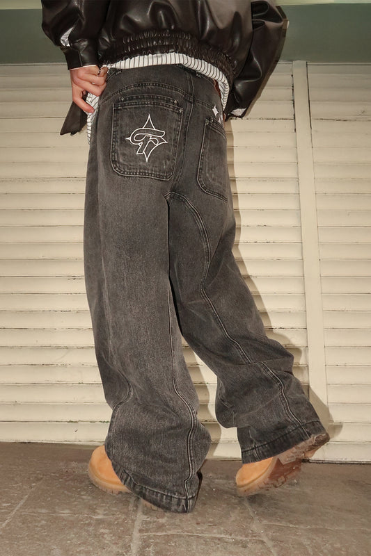 "LFF" EMBROIDERED BAGGY JEAN DARK WASH