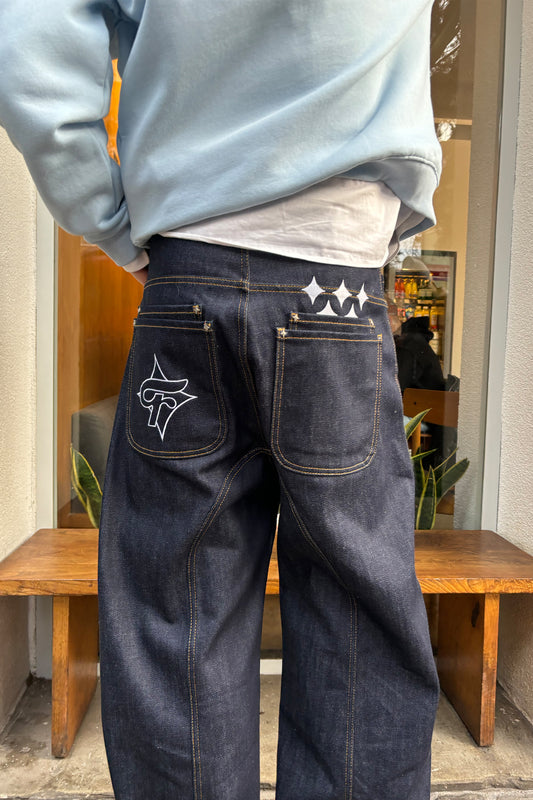 Sold out"LFF" EMBROIDERED BAGGY JEAN RAW